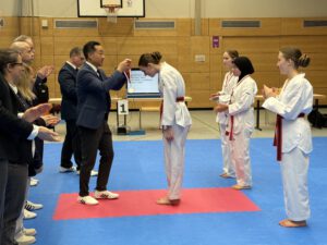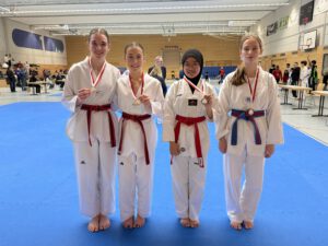 Bei den internationalen Hessenmeisterschaften in Wiesbaden am Nikolaussamstag, dem Jahresabschlussturnier in Hessen, zeigten die beiden Hünfelderinnen Lara Zimmermann und Sarah Habersack starke Leistungen. Zuerst ging es im Finale der Klasse Jugend A 15-17 Jahre für Lara Zimmermann auf die Matte, sie präsentierte die 6. und 8. Form mit großer Präzision und war anschließend mit den Tageshöchstwertungen nicht mehr einzuholen. Als drittes musste dann Sarah Habersack ihr Können zeigen. Sie zeigte die 5. und 8. Form und glänzte vor allem durch ihre kräftigen Techniken. Hauchdünn landete sie hinter Lara Zimmermann auf Platz 2, die weiteren Konkurrentinnen waren mit großem Abstand auf den weiteren Plätzen zu finden. Ein toller Erfolg zum Abschluss des Jahres!
